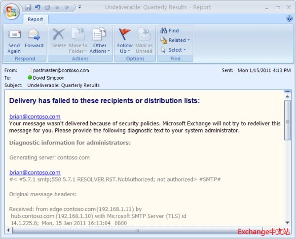 在 Exchange 2013 当中,NDR 邮件的内容分为两种情况,一种是由同一服务器生成,另一种是由不同服务器生成,下面 Exchange 中文站 就两种不同的情况进行讲解并示例,内容来自于 Technet。