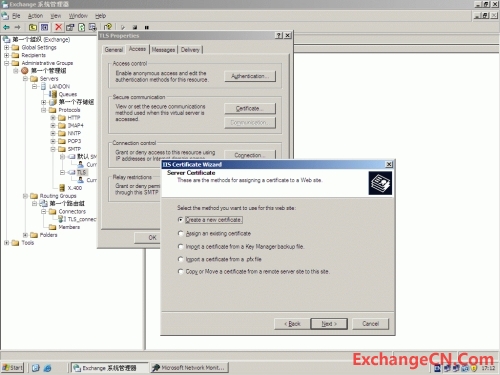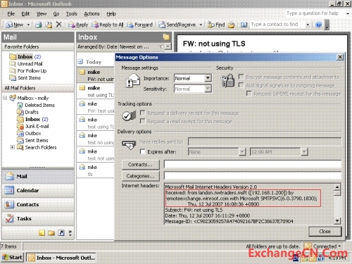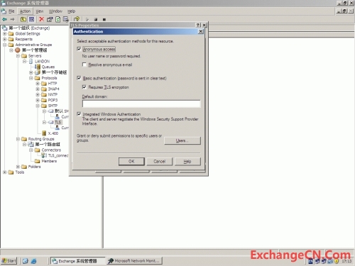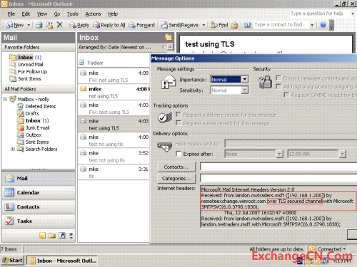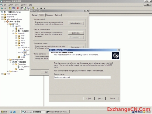 在smtp虚拟服务器属性里面,communication按钮下,还有一个”require secure chanel”可以选择,但如果选择了这个选项,所有通过这个虚拟服务器的通讯都需要使用TLS连接,即便是在和一个服务器上的另外一个smtp虚拟服务器通讯。
