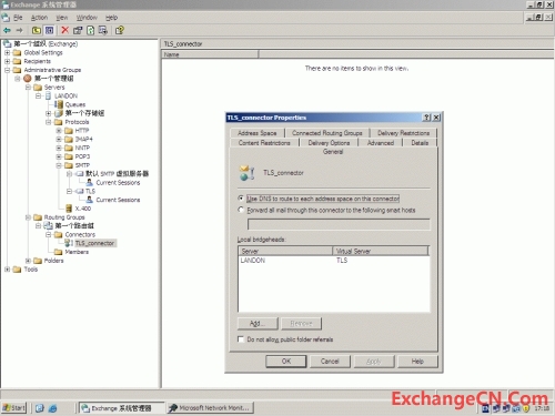 Local bridgeheads选择新建的那个smtp虚拟服务器