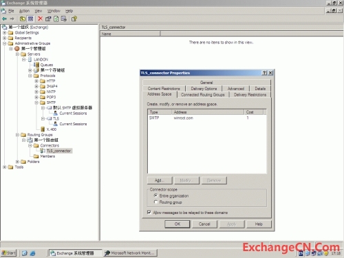 Address space 里面选择你要建立TLS的那个域名,注意下面有个选项(allow message to be relayed to there domains)