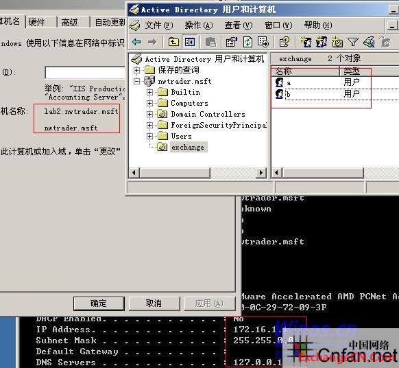 最后一步,删除第一台 Exchange Server 2003 计算机(LAB2).
