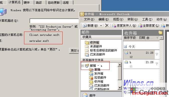 多台加到域的内网客户端.(装有OUTLOOK)+