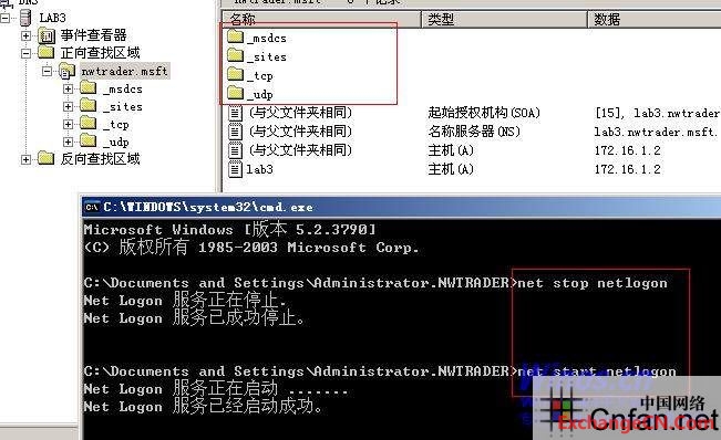 重新加载DNS,目的是让区域生成SRV(资源指针记录).