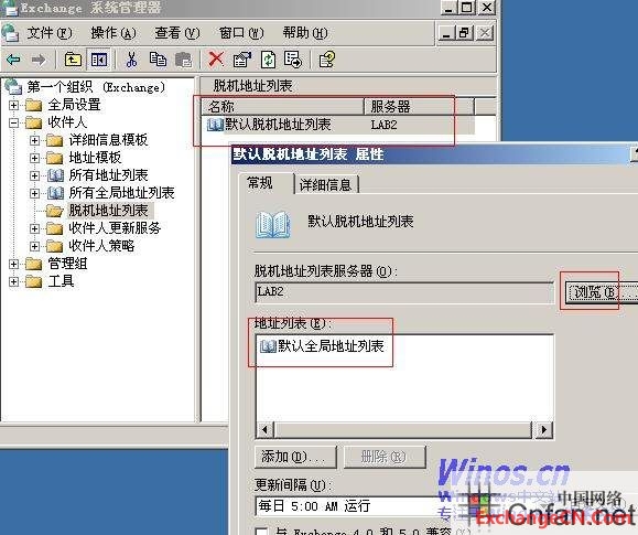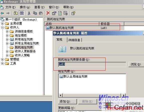 3.更改负责生成脱机地址列表的服务器.由LAB2改成LAB3.
