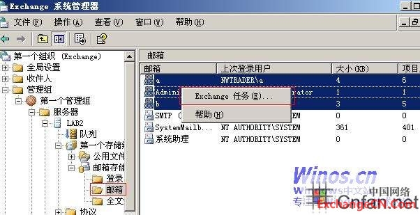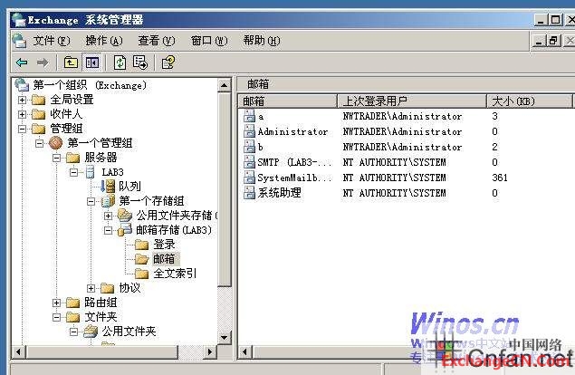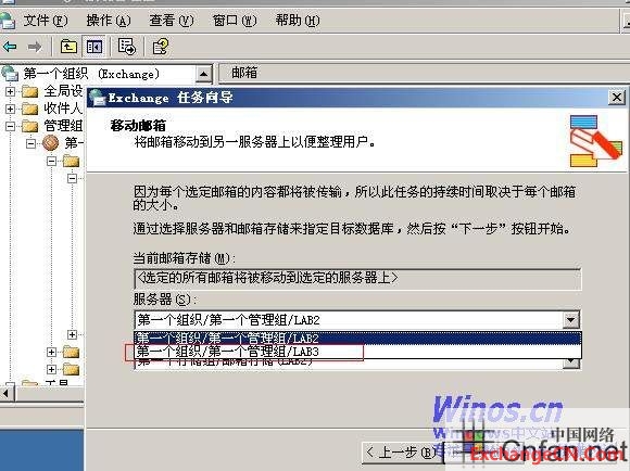 选中新的邮箱存储(LAB3).转移过去.