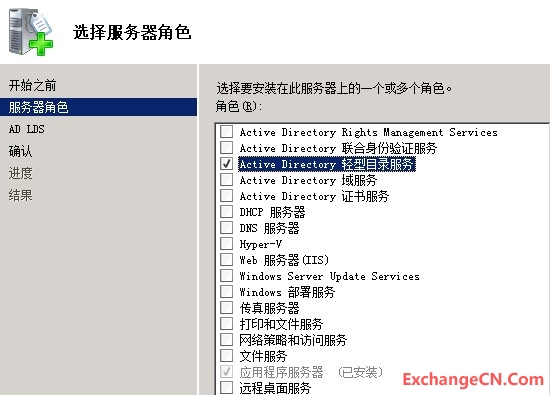 边缘传输服务器需要添加一个“Acrive Directory轻型目录服务”的服务器角色。