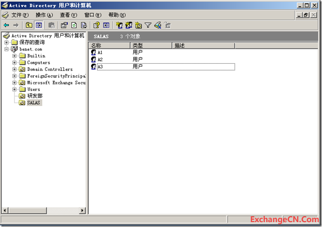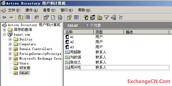首先在AD管理中的SALAS的OU中看到创建的联系人。
