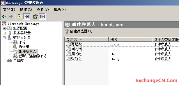 首先在企业环境中,我们部署好了exchange邮件服务器,第一件事情就是为域中的每一个员工创建一个企业邮箱,然后将我们的联络清单输入exchange中。当然,我们可以透过命令工具来完成创建邮箱的工作,在exchange2007的SP1版本中,是否想体验一把一键添加活动目录所有员工的感觉呢?只需要在图形界面轻轻点击,就可以完成了批量创建邮箱帐户。只需要有一个text文件,就可以传入exchange的联系人中。从简到难,先看一下Exchange 2007 SP1中是如何体现批量创建邮箱用户的。