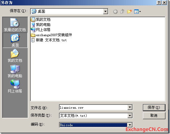 然后另存为一下,将后缀改为csv的格式,以便可以输入中文,并且编码格式改为Unicode,然后保存。