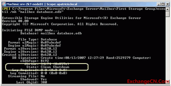 这个前提就是你需要确保你的Exchange数据库文件的状态是干净关闭的。并且能够被复制到其它的机器上去。如下图所示