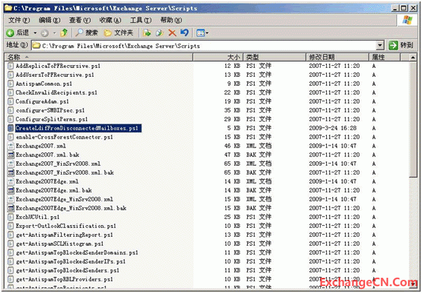 微软已经帮助我们写好这个脚本,该脚本可以在这个地址找到,将此脚本命名为 CreateLdifFromDisconnectedMailboxes.ps1并将此脚本保存到Exchange安装路径下C:\Program Files\Microsoft\Exchange Server\Scripts