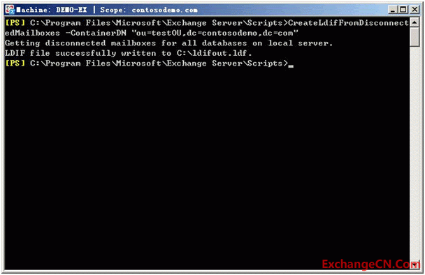 在Exchange PowerShell中运行该脚本,该脚本运行后会在C盘根目录下生成一个ldifout.ldf文件
