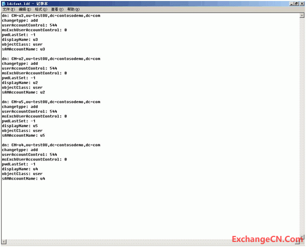 4、 创建未链接邮箱的用户帐户列表,保存为LDF格式的 文件。