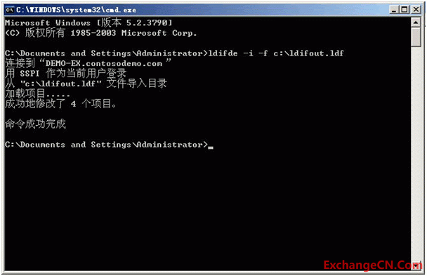 现在使用Ldifde工具将此 LDF文件导入到AD中生成用户帐号