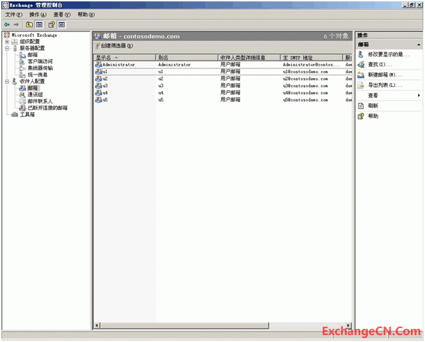 执行上述命令后我们再回到Exchange管理器中,就可以浏览到这些用户了。
