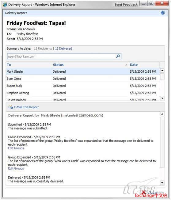 管理员可以通过ECP的reportiing 标签或者EMC的toolbox的message tracking来获取Delivery Reports (其实就是个邮件追踪,只不过现在普通用户也能查到和自己邮件相关的记录了而已。仅仅是提升用户体验,没什么了不起的。)