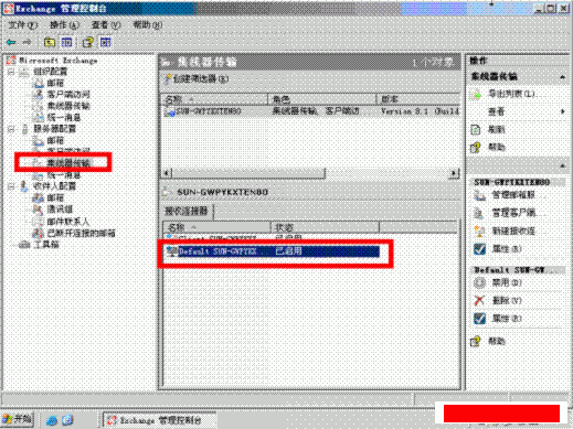 “Exchange控制台”——“服务器设置”——“集线器传输”——“默认接收连接器” ,参见图2-5 图2-6