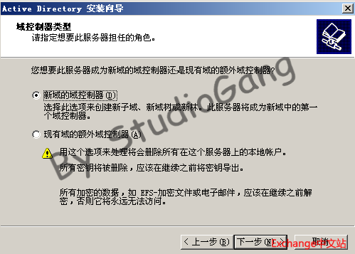4.选择“新域的域控制器”,下一步