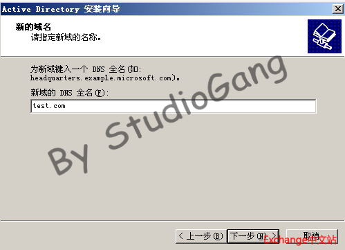6.指定域的名称“test.com”,下一步