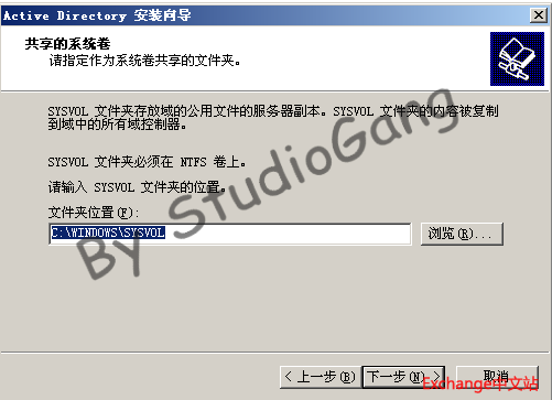 9.指定共享的系统卷位置,注意是NTFS格式的,默认的,下一步