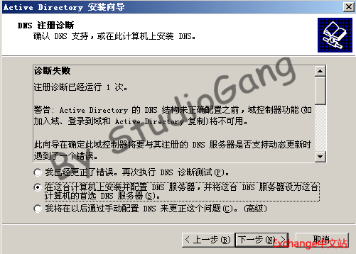 10.这一步要诊断DNS,选择第二项,在本机上安装DNS服务器