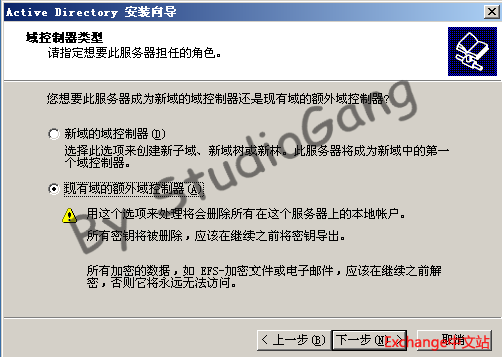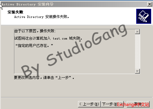 如果在点击下一步的时候出现这种错误,有可能是你的主域服务器 没有开启导致的