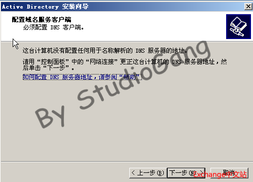 如果弹出这样的对话框,则说明你没有配置dc2客户端的静态IP地址