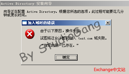 如果弹出这样的对话框,则有可能是你的dc1 和 dc2的计算机重名,修改下计算机名