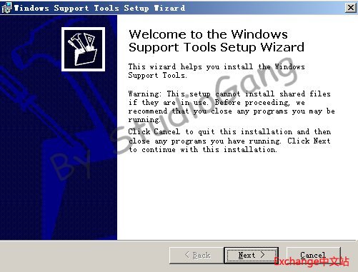 然后再到DC1那台机器上安装这个Support Tools即可,(如果需要在DC1上安装Exchange管理工具,则也要装SMTP,NNTP,IIS这几个组件,否则就不用了。)到这里,组件安装已经完成。