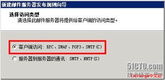 (3)选择“客户端访问:RPC、IMAP、POP3、SMTP”,如图16所示。