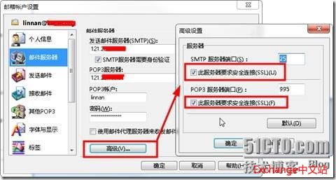 使用FoxMail与Outlook,可以配置使用安全POP3与SMTP连接到Exchange邮件服务器收发信,如图22所示。