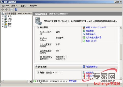 在Windows Server 2008(或Windows Server 2008 R2)中,单击“开始”-“程序”-“管理工具”-“服务器管理”,或在“运行”中输入命令:servermanager.msc命令打“服务器管理”程序。