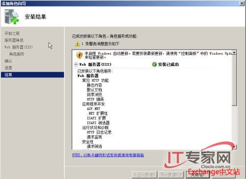 通过以上的步骤即可以完成IIS7.0的安装了,IIS7.0和以前的版本相比还是有非常大的区别的,有些用户可能在使用习惯上还需要一定的适应阶段,总之,希望一切顺利。