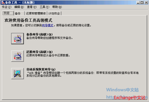2、在开始 – 运行中输入ntbackup命令打开备份工具,然后单击“备份向导”。