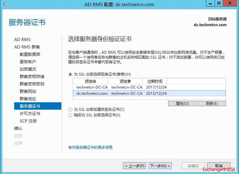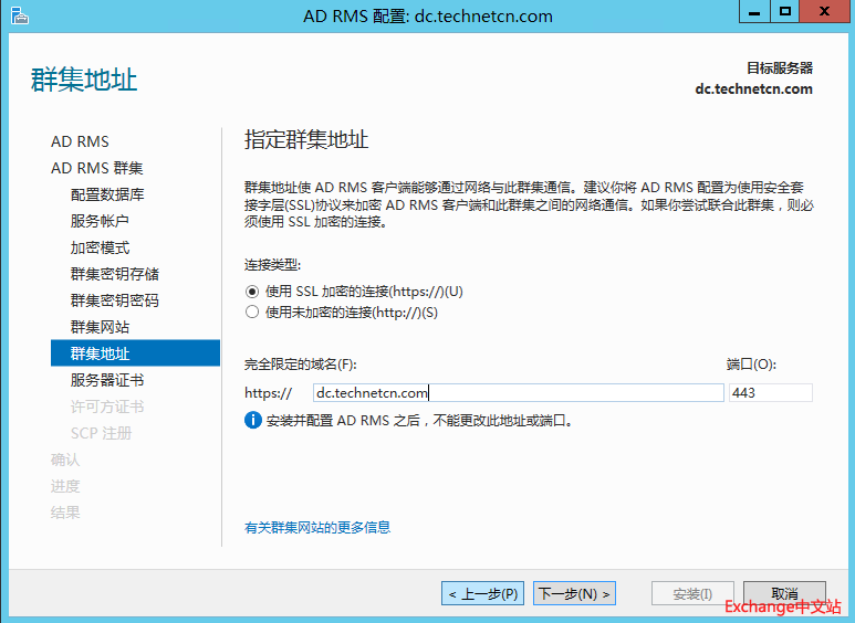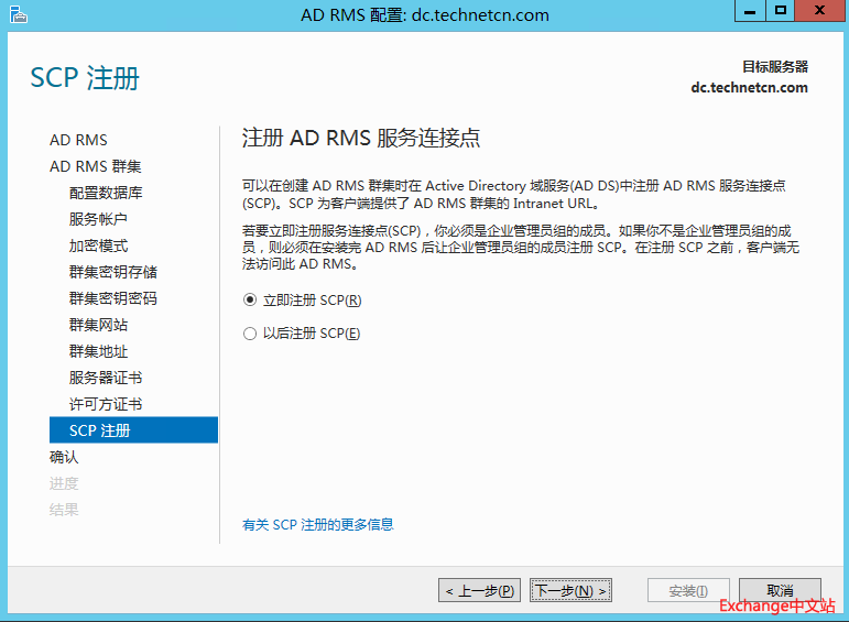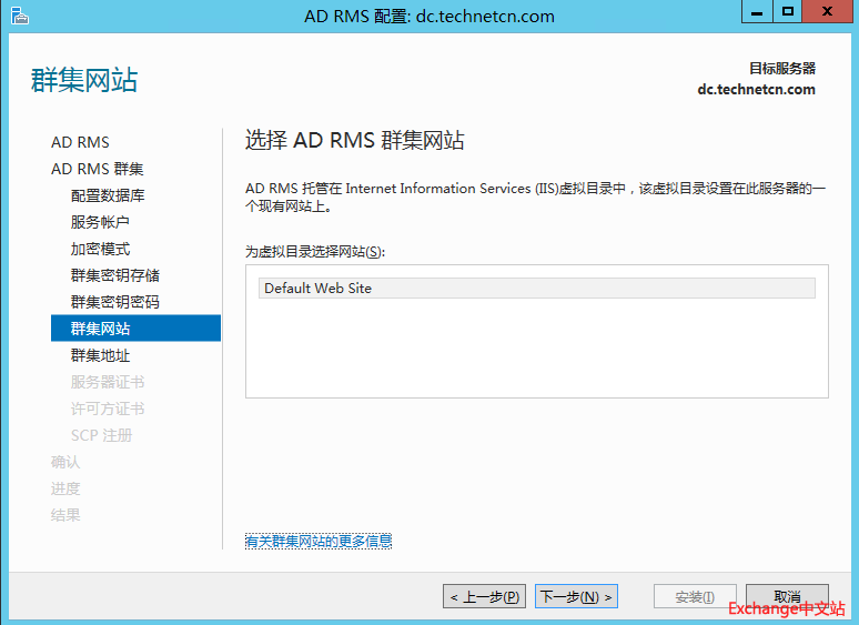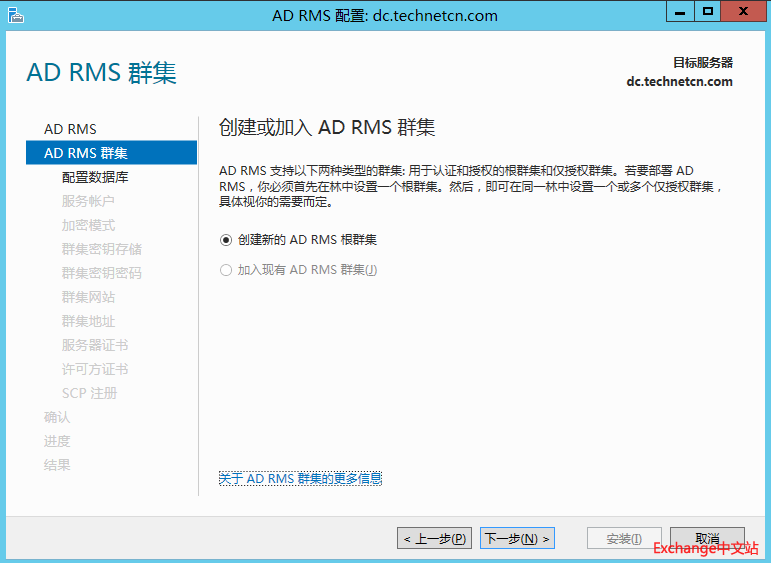 选择创建新的AD RMS 根集群。下一步。