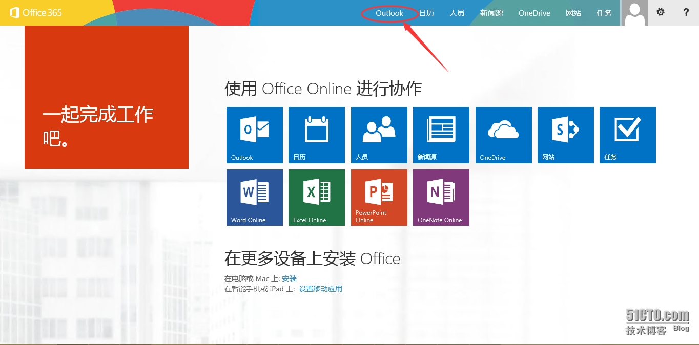 - 使用账号密码登录Office 365, 点击“Outlook”