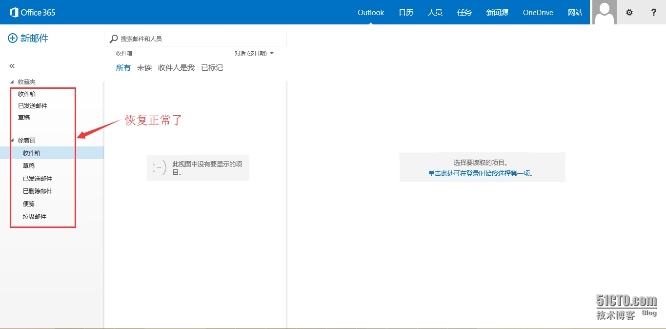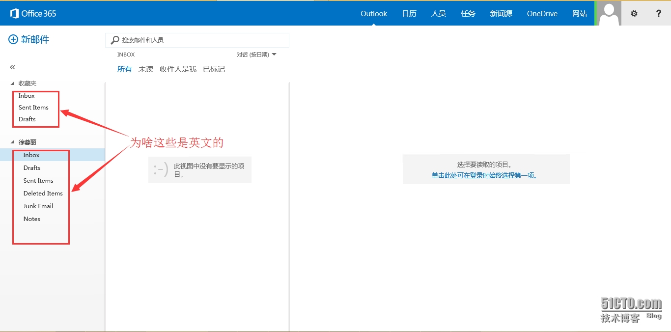- 进入OWA后看到默认的文件夹竟然是英文显示的,刚才明明是选择了语言的,此时很多人特别郁闷;