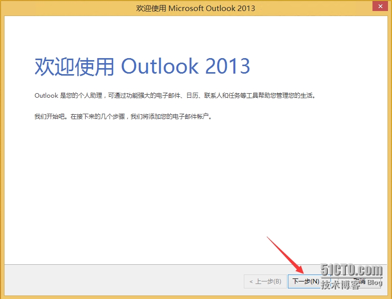 - 打开Outlook 2013,点击“下一步”