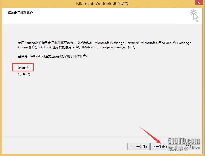 - 点击“是”—-“下一步”开始配置电子邮件向导