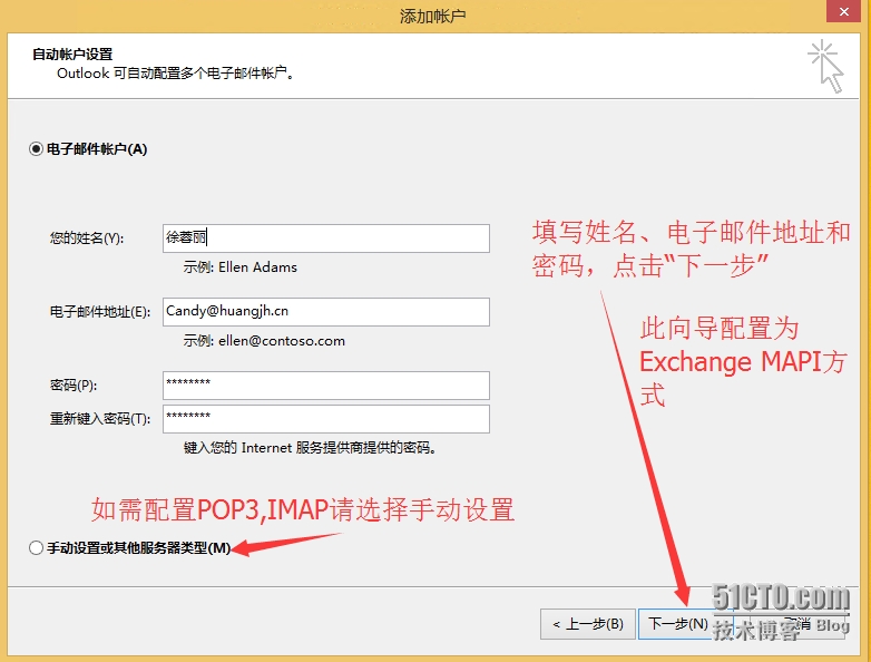 - 输入电子邮件账户信息,点击“下一步”