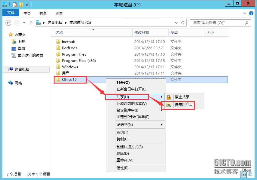 - 右键选择“共享”—“特定用户”