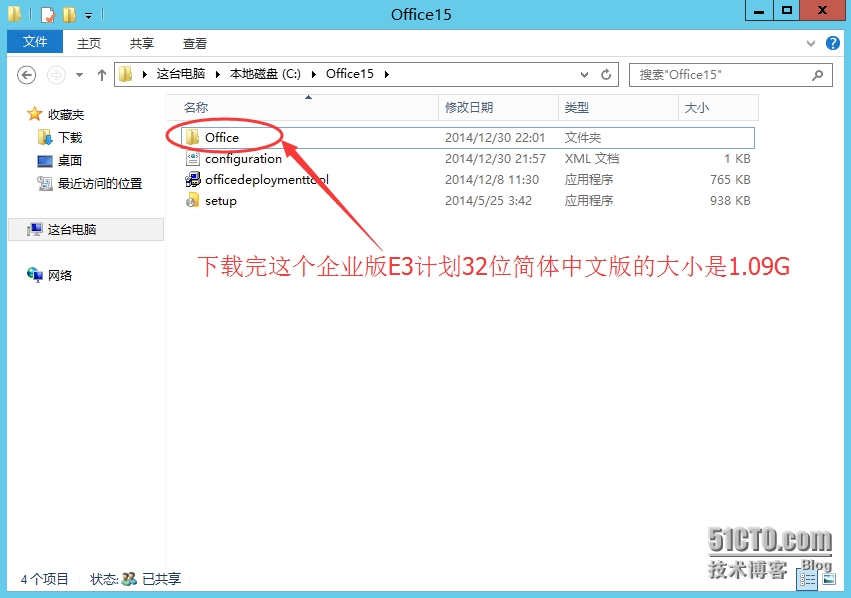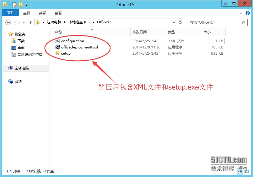 将下载的office部署工具解压到当前文件夹,如图