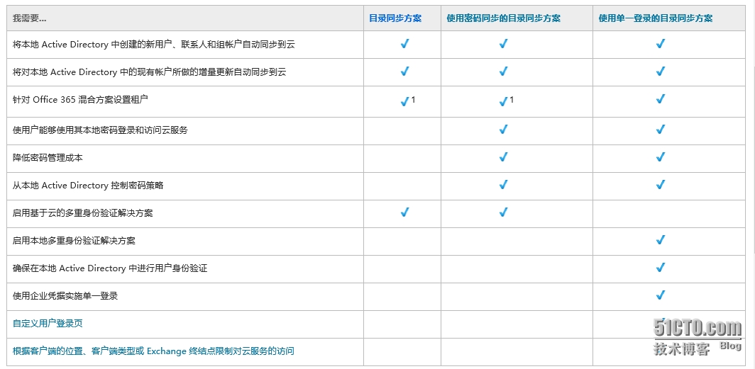在实际企业环境中,绝大部分公司已经有域环境了,也有自己内部的域用户和用户组。如果使用O365服务后又是独立的一套账号和密码,这对用户来说非常不方便,对于企业管理员来说也不好管理,必须得管理2套不同的用户和策略。由此对于O365微软提供了以下解决方案,我们来看看这几种方案有何区别: