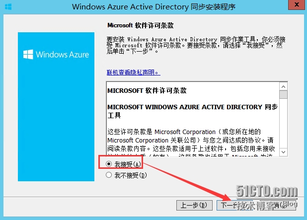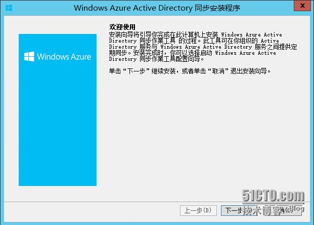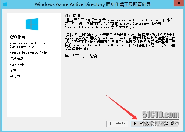 3.3 安装活动目录同步工具(可从O365管理中心下载),运行安装程序,点击“下一步”