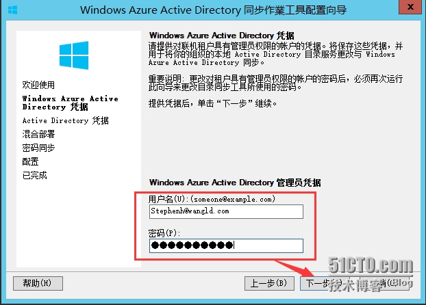使用密码同步的目录同步方案– 如果要让用户使用他们在登录企业网络和资源时所用的相同用户名和密码来登录 Azure AD 和其他服务,请使用此方案。密码同步是目录同步工具的一个功能。