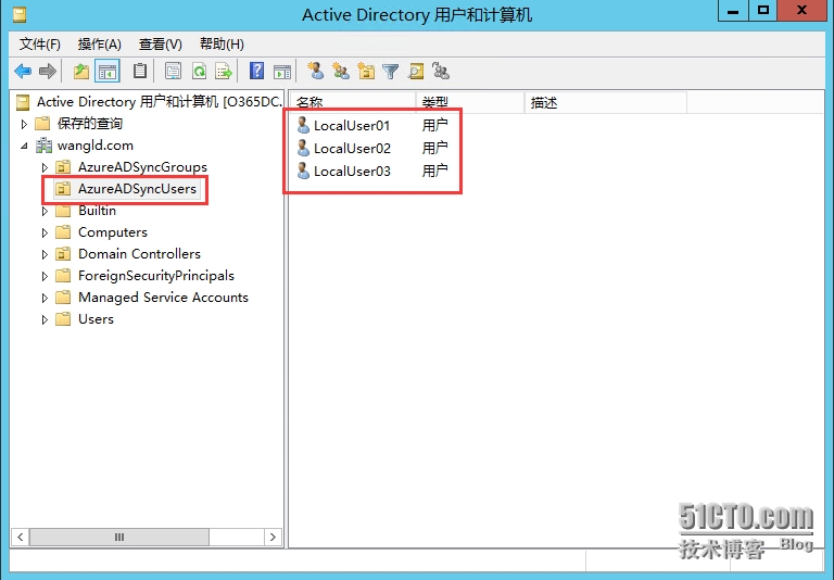 4.1 在Active Directory 用户和计算机中创建好OU,并将需要同步至AzureAD的用户存放在此OU中;