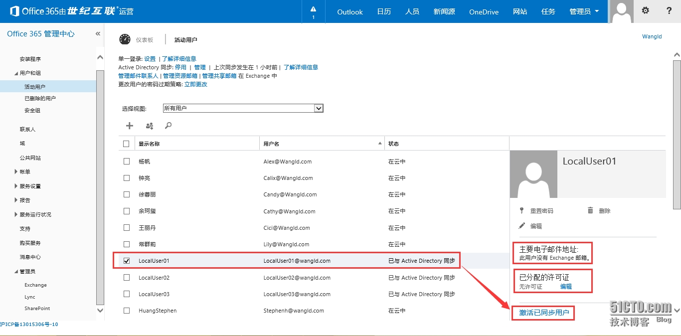 5.2 同步完成后并没有分配许可和电子邮件地址,点击“激活已同步用户”