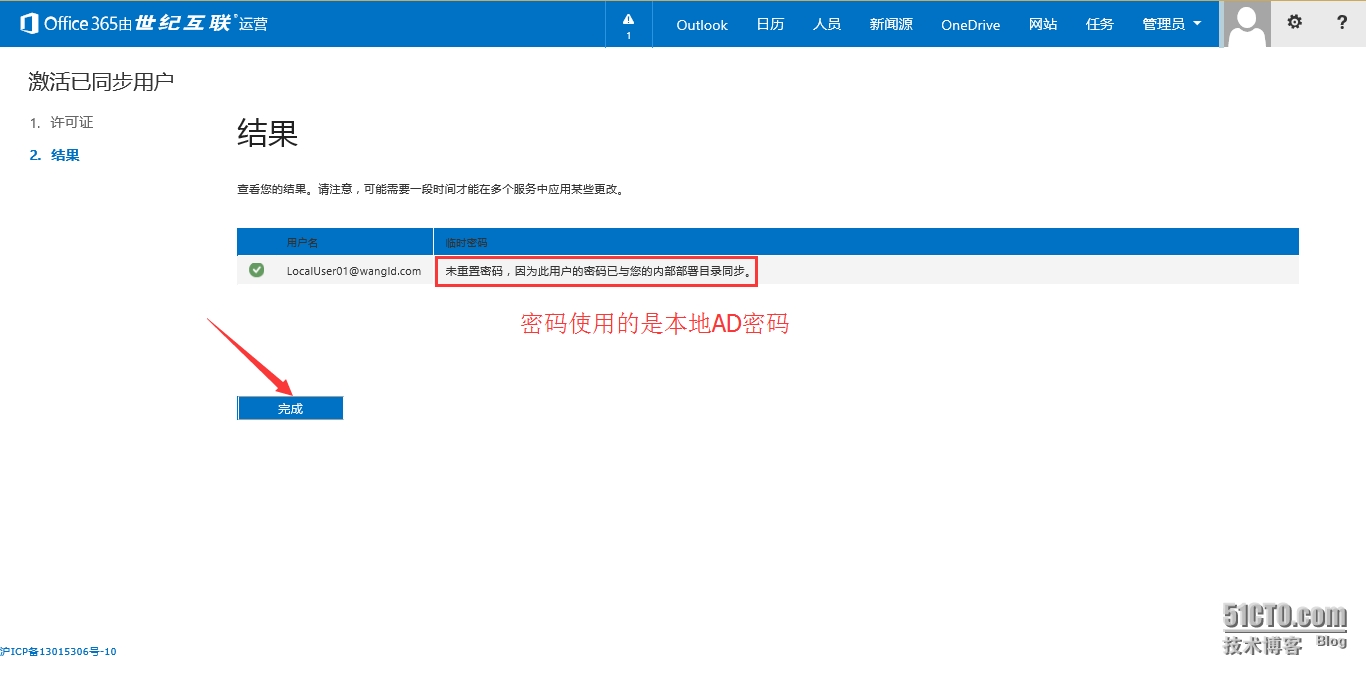 5.4 在结果页面点击“完成”,此步骤不会生成密码,使用的是本地AD的密码