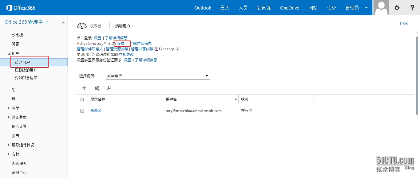 1.首先登录到Office 365中,找到用户,在AD同步旁点击设置