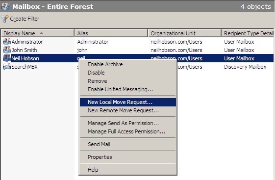 - 邮件点击用户,选择”新建本地迁移请求”
